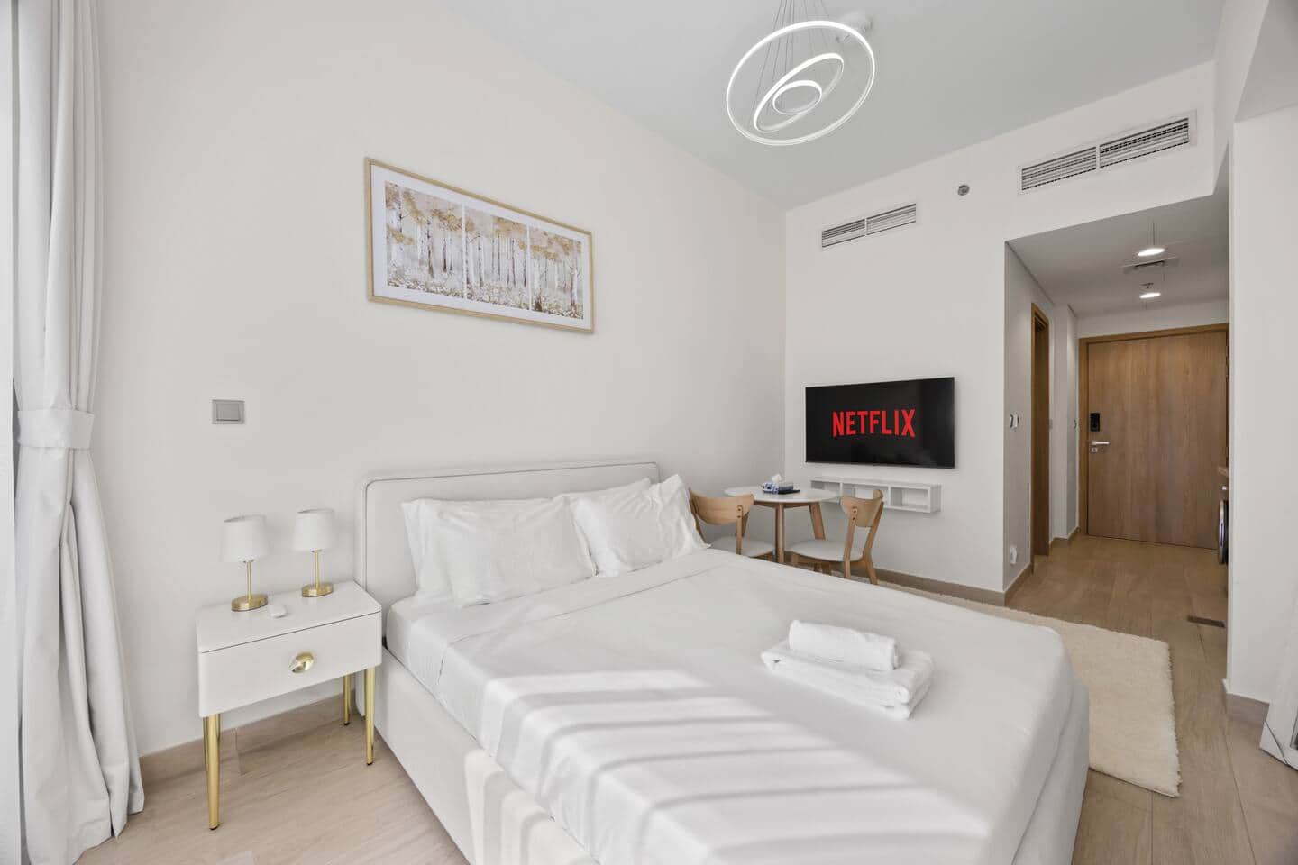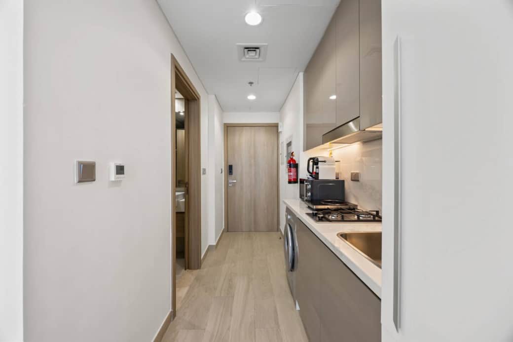 Experience urban luxury in our 1 BHK smart home, nestled in the heart of MBR City. This contemporary haven boasts cutting-edge smart home features that cater to your every need, ensuring an effortless and personalized stay. Located just a stone's throw away from Downtown. Inside, indulge in state-of-the-art amenities, modern décor, and panoramic views of the dazzling cityscape. Elevate your Dubai experience, making it not just a trip, but a lifestyle statement. ID405 The Space - Luxurious queen-sized bed promising a serene and restful night's sleep - Fully equipped kitchenette with premium appliances for all your culinary needs - High-speed Wi-Fi to keep you seamlessly connected - Smart TV for your entertainment pleasure - Well-appointed bathroom stocked with all essentials - Efficient air conditioning ensuring your utmost comfort - Access to the exceptional amenities within the Azizi Riviera community, including a state-of-the-art gym Azizi Riviera is not just a place to stay; it embodies a sophisticated lifestyle. This esteemed building features secure access and a welcoming community ambiance. Enjoy the premium shared amenities, including a modern fitness center and a swimming pool. Whether your stay is for business or leisure, Azizi Riviera guarantees a seamless and delightful experience. Gym open from 8:00 to 20:00 and the Swimming pool 8:00 to 20:00, free access